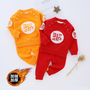 2021秋冬新款宝宝毛衣套装外套加绒加厚1-3岁0...