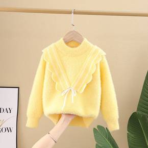 女童水貂绒反季毛衣外穿2022新款加绒中童长袖休闲...