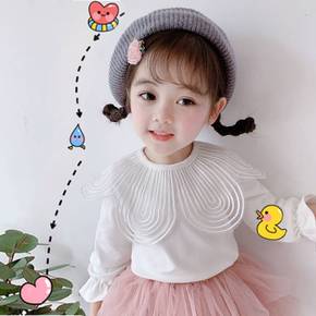 女童韩版刺绣打底衫新款儿童宝宝木耳边长袖T恤...