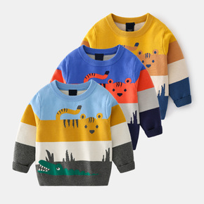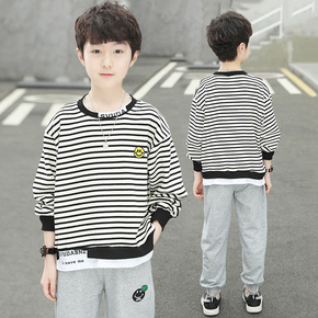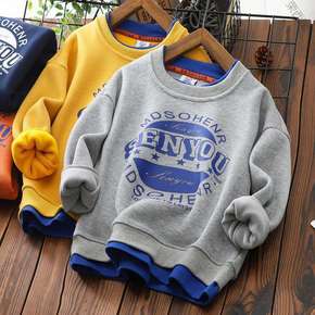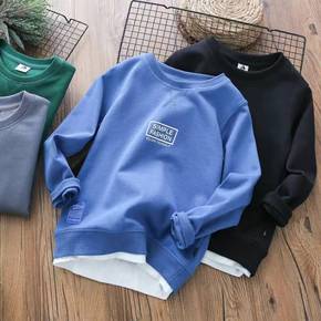 男童棉卫衣2021春秋新款洋气假两件圆领打底衫中大...