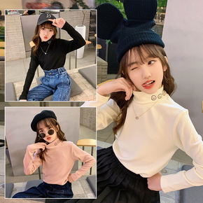 女童打底衫春秋儿童t恤长袖高领白色女孩上衣2022...