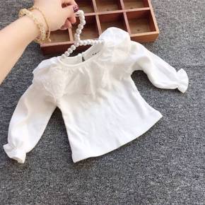 宝宝打底衫公主春秋夏季薄款上衣女白色长袖婴儿加绒翻...
