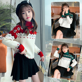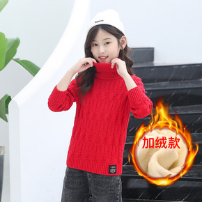 女童针织毛衣2021秋冬新款韩版宽松高领加厚针织潮...