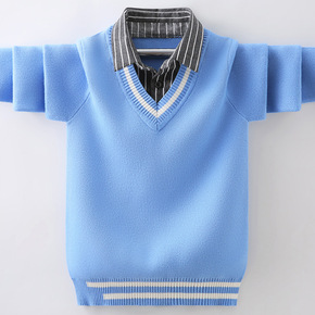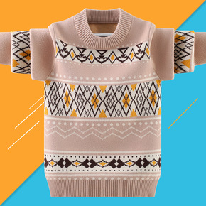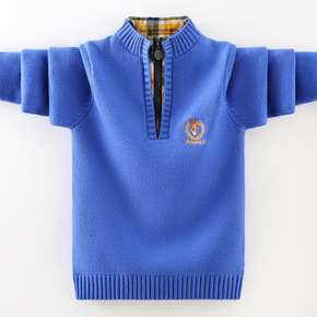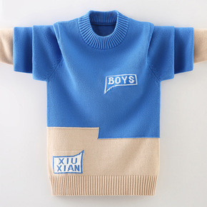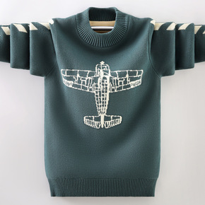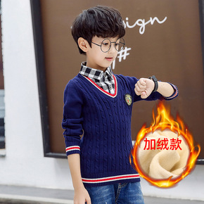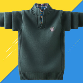 童装毛衣男童毛衣套头秋冬新款中大童针织打底衫加绒加...
