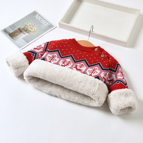 儿童冬季加厚毛衣宝宝韩版撞色加绒针织衫男女童圆领打...