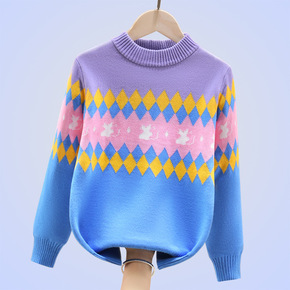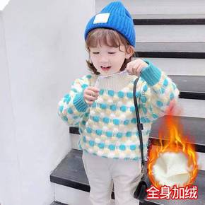 女童毛衣加厚儿童2022新款格子上衣宝宝洋气冬季套...