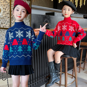 女童毛衣2021秋冬新款中大童圣诞毛衣洋气针织套头...
