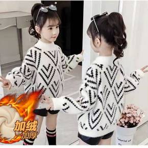童装女童仿水貂绒套头毛衣加厚2022新款秋冬季针织...