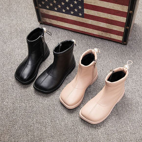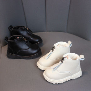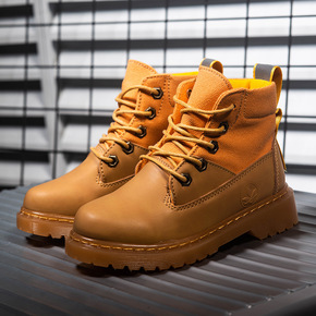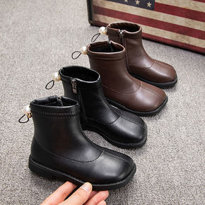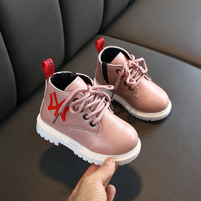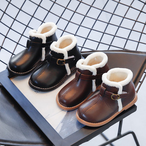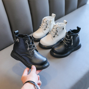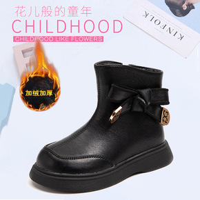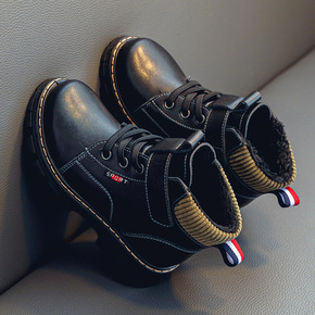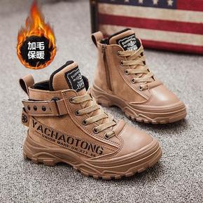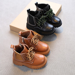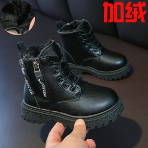 男童马丁靴男宝宝秋冬加绒靴子英伦风女童休闲低筒皮靴...