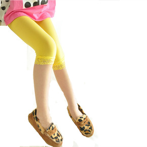 春夏款蕾丝儿童七分打底裤 女童天鹅绒五分花边连裤袜...