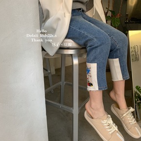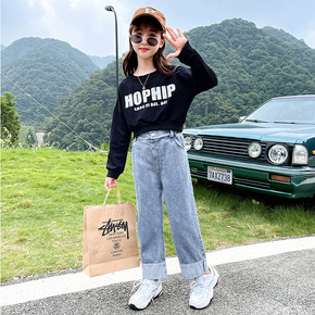 童装2022新款秋装时尚女童牛仔裤儿童洋气阔腿裤春...