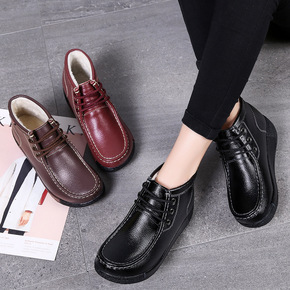 跨境大码2020冬季加绒保暖女鞋休闲圆头平跟女系带...