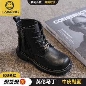 莱蒙童鞋2021冬女童真皮头层牛皮加绒靴侧拉链时尚...