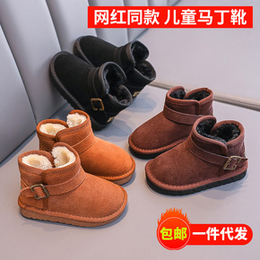 男童马丁靴2021冬季新款儿童中帮靴子女童大棉加绒...
