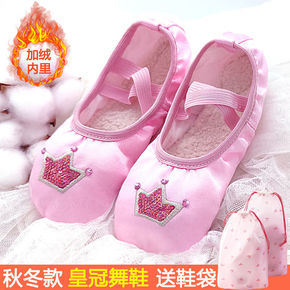 冬季加绒保暖儿童蕾丝花边舞蹈鞋芭蕾猫爪鞋跳舞帆布练...