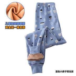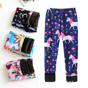春秋新款女童印花牛奶丝加绒打底裤小中大童柔软保暖长...