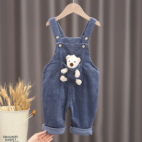 新款儿童裤宝宝背带裤韩版春装长裤灯芯绒洋气男女童连...