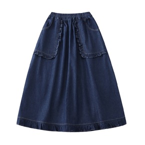 乖巧少女感木耳边水洗牛仔A字裙过膝半身裙...
