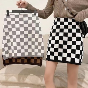 早春清新甜美格子针织短裙韩版新款女装小个子百搭高腰...