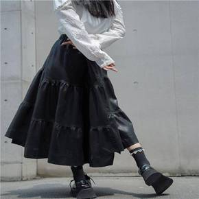 芍药居少女「映像嬉皮士」黑色不规则半身裙字秋冬高腰...