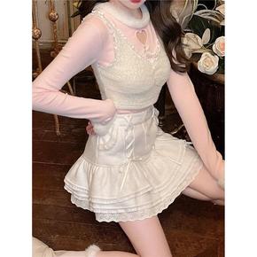甜美纯欲风软糯系带针织蛋糕裙女秋冬新款日系辣妹高腰...