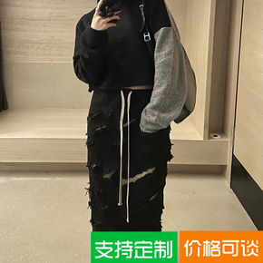Xz R0的雅痞女孩撕破牛仔裙a字半身裙女秋冬季设...