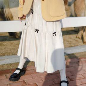 小清新森女甜美2021半身裙百搭米白色秋冬半身裙新...