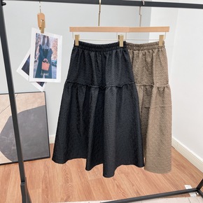 春清新甜美外单棉中长裙拼接黑色摩卡色半身显瘦A 字...