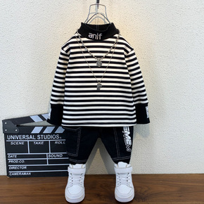 男童加绒卫衣秋冬洋气2021新款冬装儿童加厚打底衫...