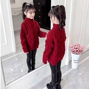 女童毛衣2020新款冬装加绒中大童小女孩高领洋气加...