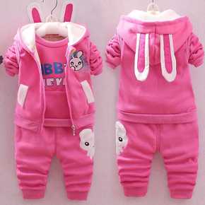 童装女宝宝秋冬三件套装洋气0-1-2-3岁婴儿加绒...