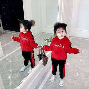 童装舒适加绒儿童卫衣 连帽运动套装韩版休闲长袖两件...