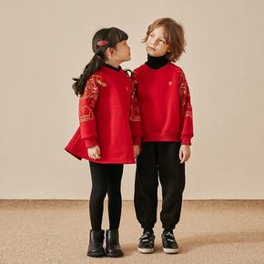 兄妹装儿童国潮拜年服绒卫衣冬中国风男童新年童装过年...