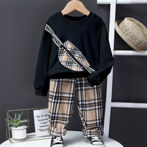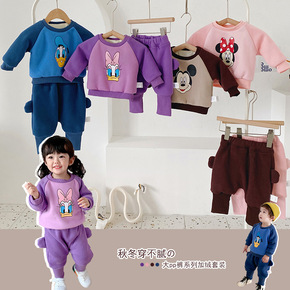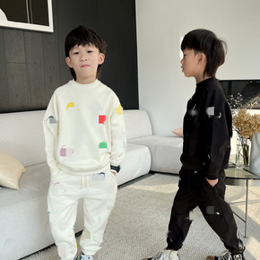 2021秋冬韩版加绒卫衣套装 儿童数字宽松加绒卫衣...