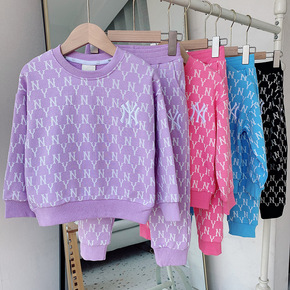韩版MLB儿童立体刺绣满印圆领套头卫衣卫裤套装NY...