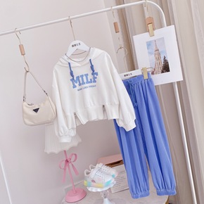 2022春季新款中大童儿童韩版连帽卫衣运动休闲两件...
