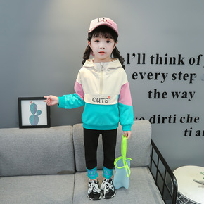 中大童拼色撞色连帽卫衣套装 870214...