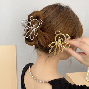 新款小熊抓夹韩国ins发饰超大号发抓银色发卡头饰女...