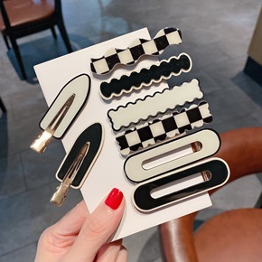 黑白棋盘格ins少女复古亚克力刘海发夹碎发美妆面膜...