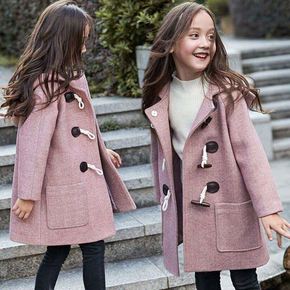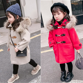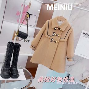 2021新款韩版加厚儿童毛呢大衣牛角扣中大女童春秋...