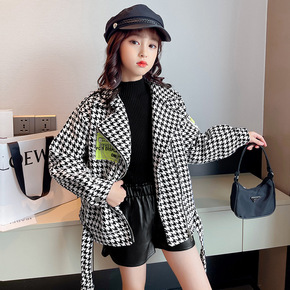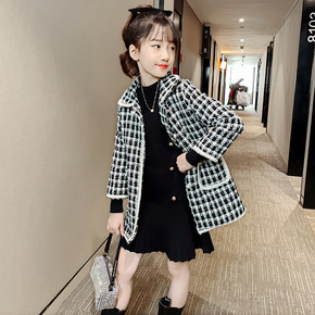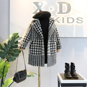 女童毛呢外套洋气童装女202新款中大童格子加棉呢大...