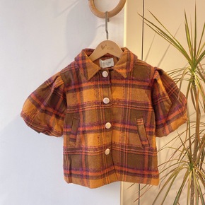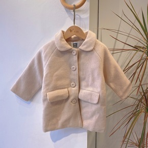 2021现货无腰带潮范女童棉单排扣棕色翻领韩版棉内...