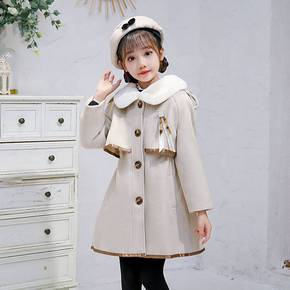 女童呢子大衣秋冬装202新款韩版中大儿童装洋气加绒...