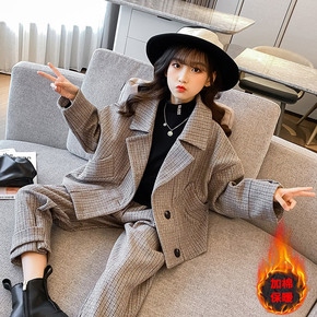 女童毛呢套装秋冬宽呢子夹棉加厚外套两件套202年新...