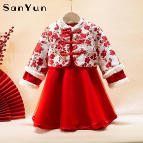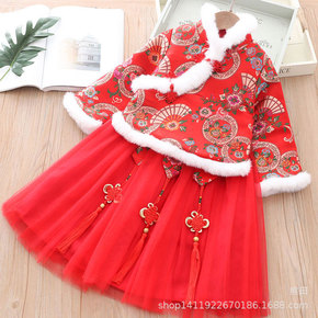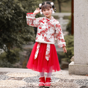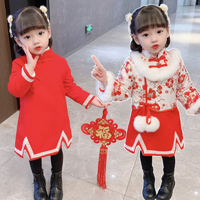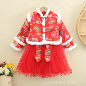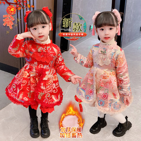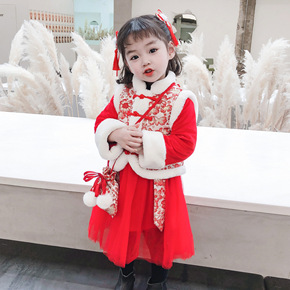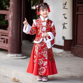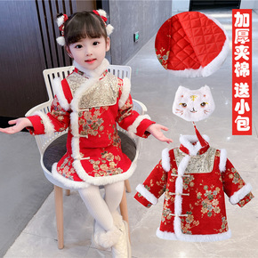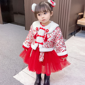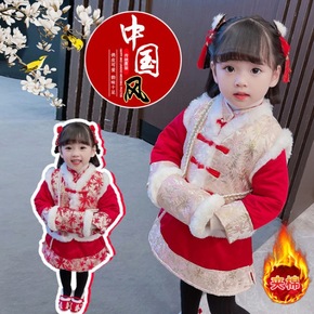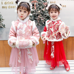 汉服女童冬装过年唐装女宝宝拜年服加厚儿童中国风小女...