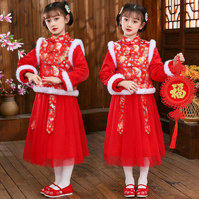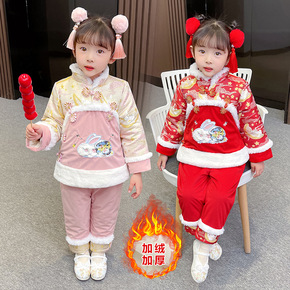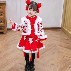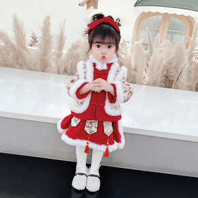 汉服女童秋冬装儿童唐装中国风冬季加厚套装女宝宝过年...
