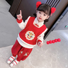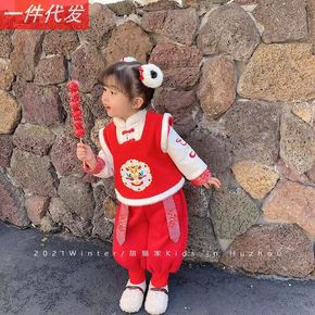女童秋冬款套装2021洋气汉服儿童冬季唐装中国风拜...