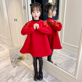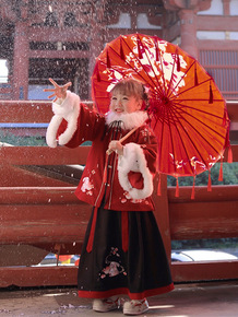 汉服女童冬装中国风儿童古风唐装古装超仙红色加厚宝宝...
