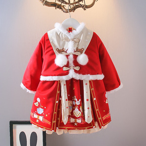拜年服女童儿童汉服宝宝古装冬季加绒加厚超仙中国风喜...