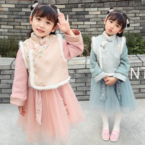 汉服女童唐装拜年服超仙中国风儿童装古装秋冬装女孩加...